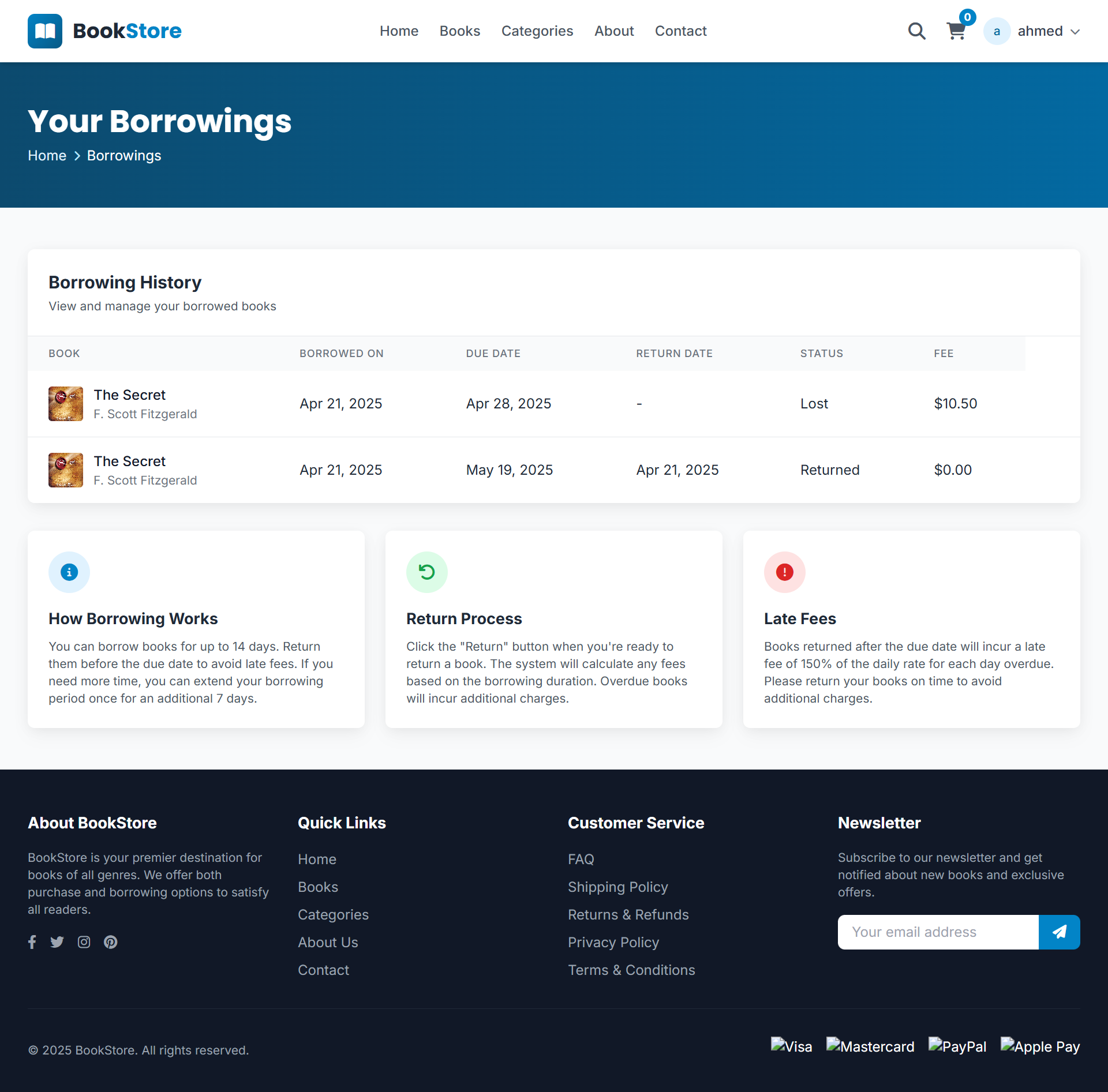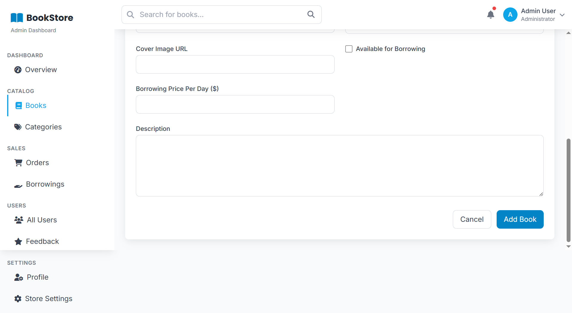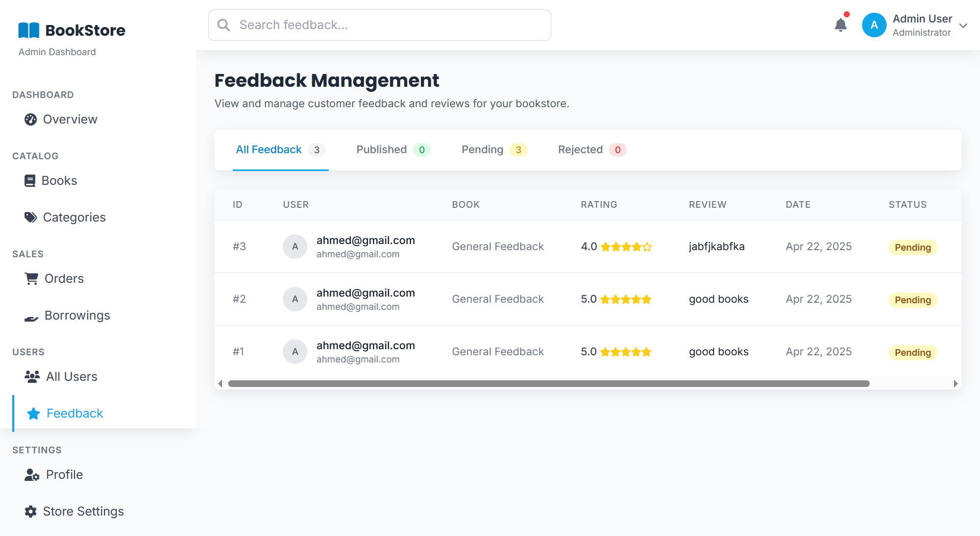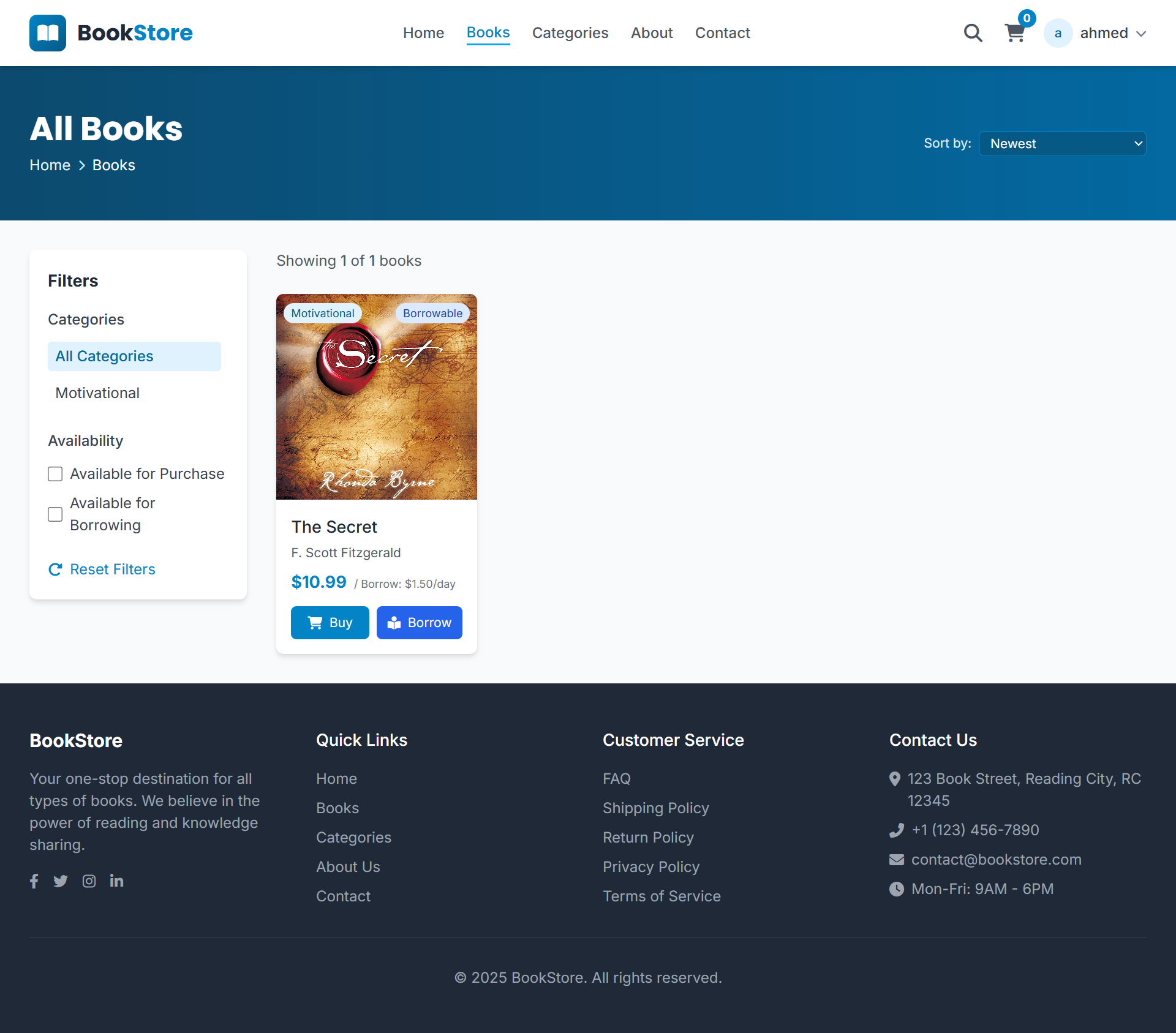A web-based Bookstore Management System that handles book sales and borrowing. It manages users, books, orders, feedback, and inventory — allowing customers to buy or rent books, leave reviews, and track orders, while admins monitor stock, sales, and borrowing activity.