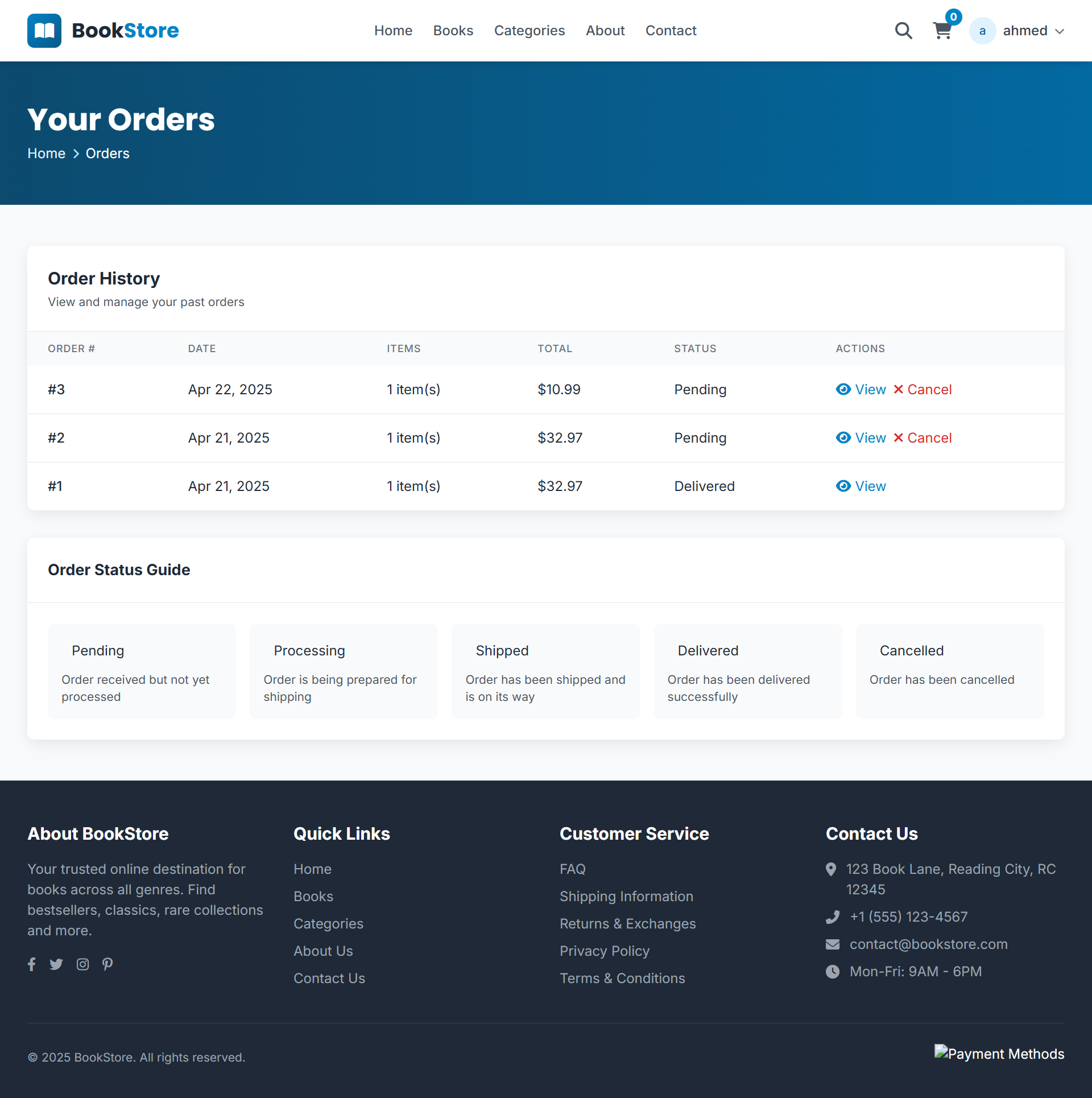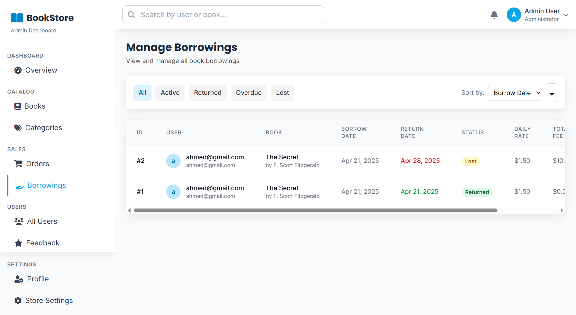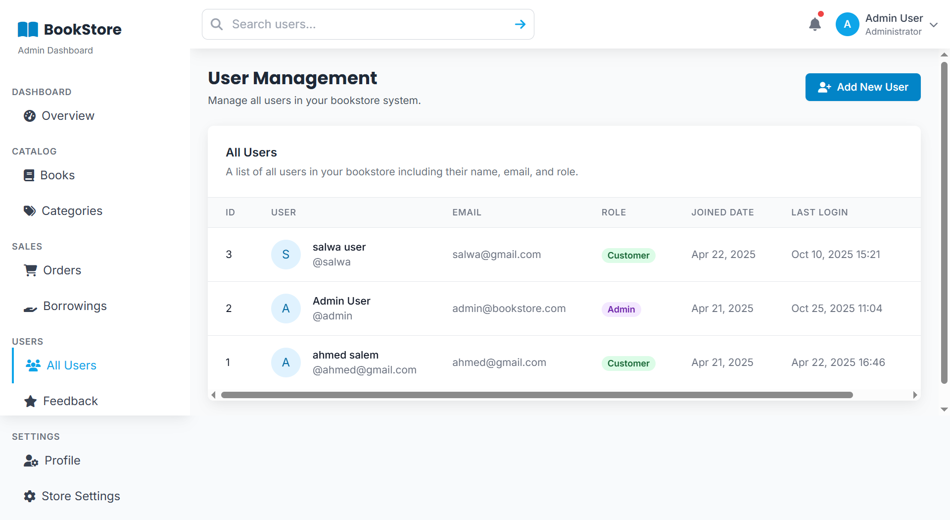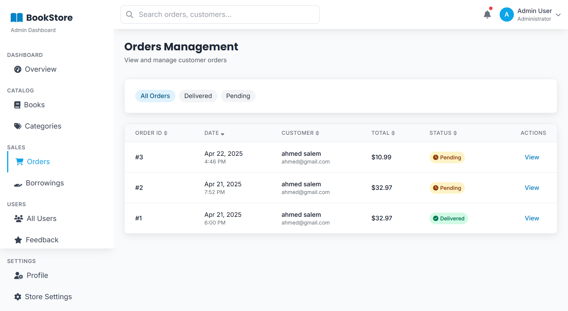 A web-based Bookstore Management System that handles book sales and borrowing. It manages users, books, orders, feedback, and inventory — allowing customers to buy or rent books, leave reviews, and track orders, while admins monitor stock, sales, and borrowing activity.